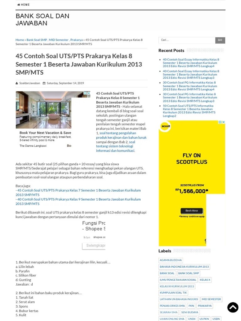 Soal pts prakarya kelas 9 semester 1, kisi kisi soal, soal dan kunci jawaban uts prakarya kelas ix semester 1 kurikulum 2013. Contoh soal utspts prakarya smpmts kelas 9 semester 2 kurikulum 2013 tahun 2021 penilaian tengah semester pts merupakan salah satu bentuk . Soal uas/pas prakarya kelas 8 kurikulum 2013 revisi terbaru 2017 ini. Contoh soal ukk pat ini untuk memberikan gambaran mengenai bentuk soal ukk/pat prakarya pada peserta didik kelas 9 smp mts kurikulum 2013. Berikut soal dan kunci jawaban penilaian akhir semester pas prakarya smp kelas 9 kurikulum 2013 tahun pelajaran 20192020.
